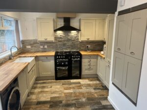 Magnet kitchen with butler sink and oak tops in Nuneaton