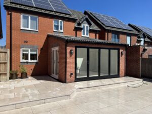 We built a ground floor extension with aluminium bifold doors and Velux roof windows ,
