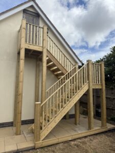 We demolished and disposed of the existing rotten stair and built a bespoke new stair on site from tanalised timber