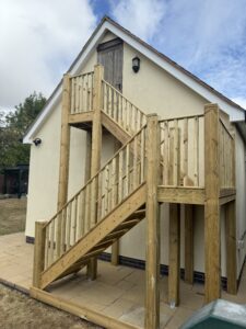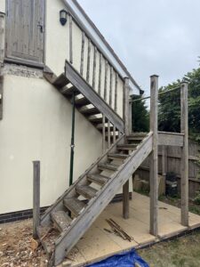We demolished and disposed of the existing rotten stair and built a bespoke new stair on site from tanalised timber