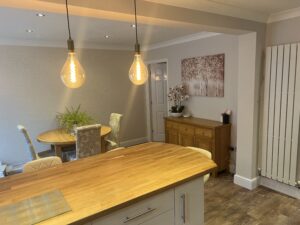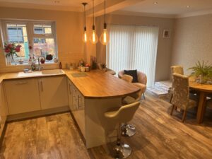 Here we removed a load bearing wall to create an open plan kitchen/ diner ( with full building regs approval ) , we partitioned off the lounge from the dining room and installed a door for access